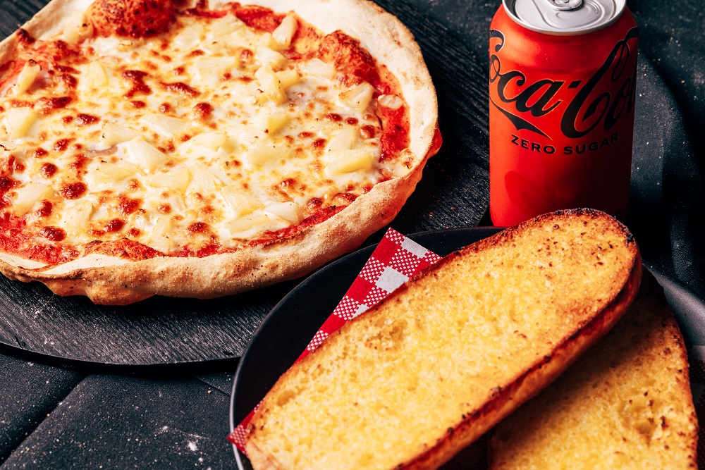 Solo Roman Dinner$251 x Medium Pizza, Garlic Bread, Can Soft Drink “A night in Rome for one — no sharing required.”