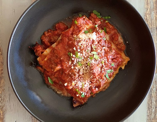 Fresh Pasta layered with Onion, Capsicum, Eggplant, Mushroom, Spinach, Bechamel, Napoletana Sauce, Parmesan0