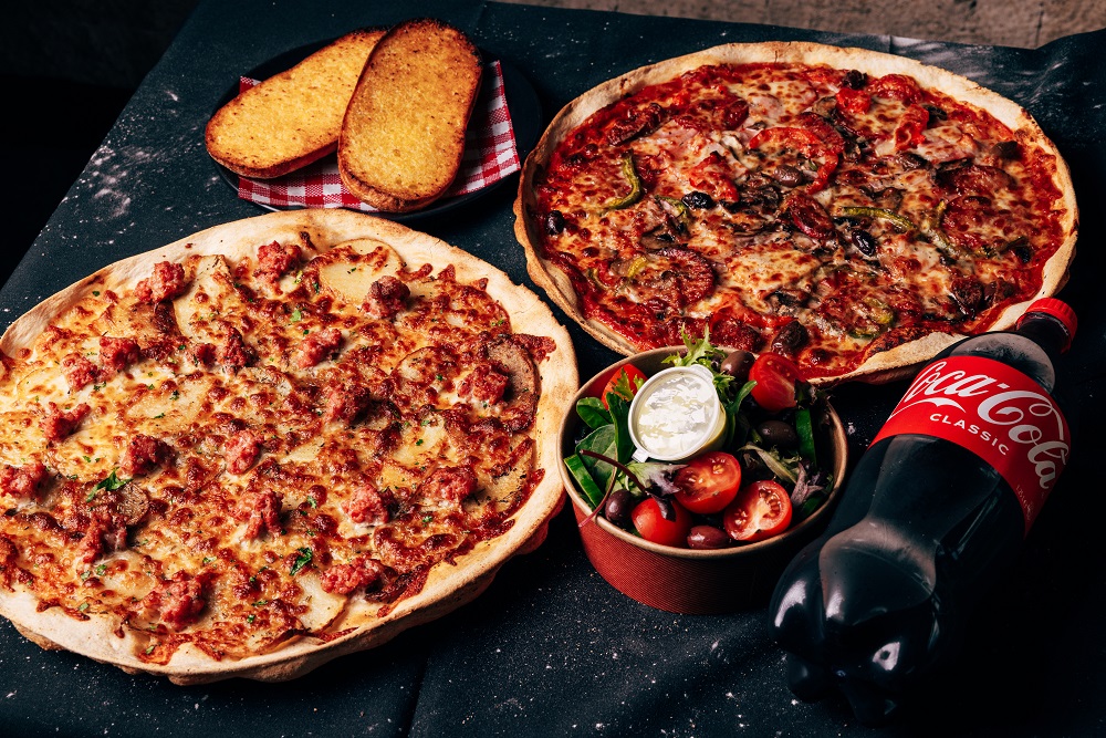 Duetto Deal$492 x Medium Pizzas, Garlic Bread, Tiramisu, 2 x Can Soft Drink