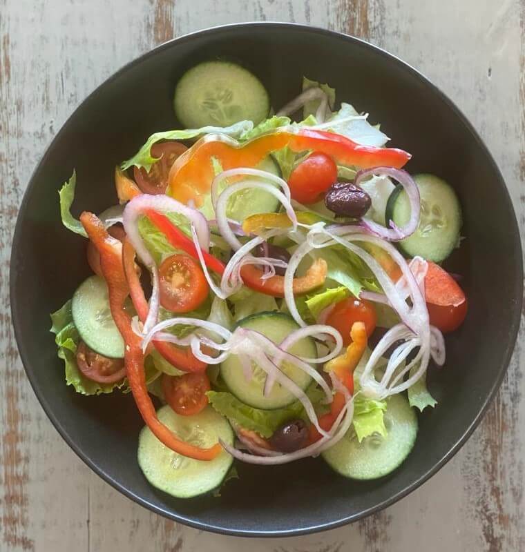 Mediterranea Salad$15Mixed Lettuce, Onion, Cherry Tomatoes, Capsicum, Cucumber, Olives and a Side of Dressing